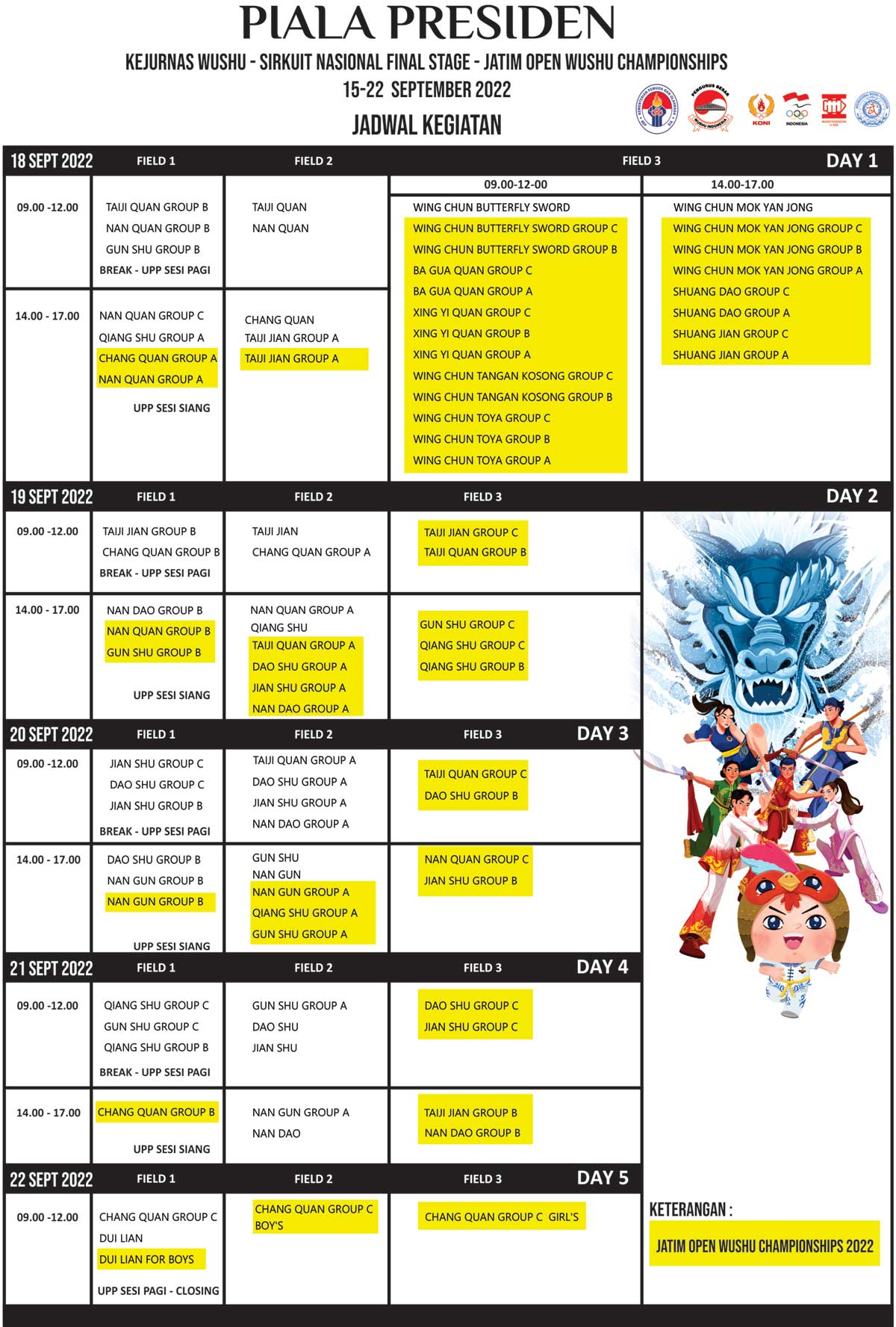 WU BU QUAN 5 SESSIONS GROUP D - Field 3 ( 23 athletes) |